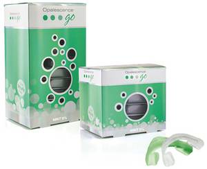 Das Bleachen an sich funktioniert immer gleich, es unterscheidet sich lediglich in den Konzentrationen und Einwirkzeiten. Das meistverwendete Produkt in unserer Praxis ist das Bleachen mit konfektionierten Schienen Zuhause (siehe Bild). Es ist einfach, komfortabel und das Ergebnis ist sehr gut. Unsere Patienten finden es auch sehr angenehm, dass die Tragezeit pro Tag nur 90 Minuten beträgt, so dass man nebenbei auch gemütlich fernsehen kann.